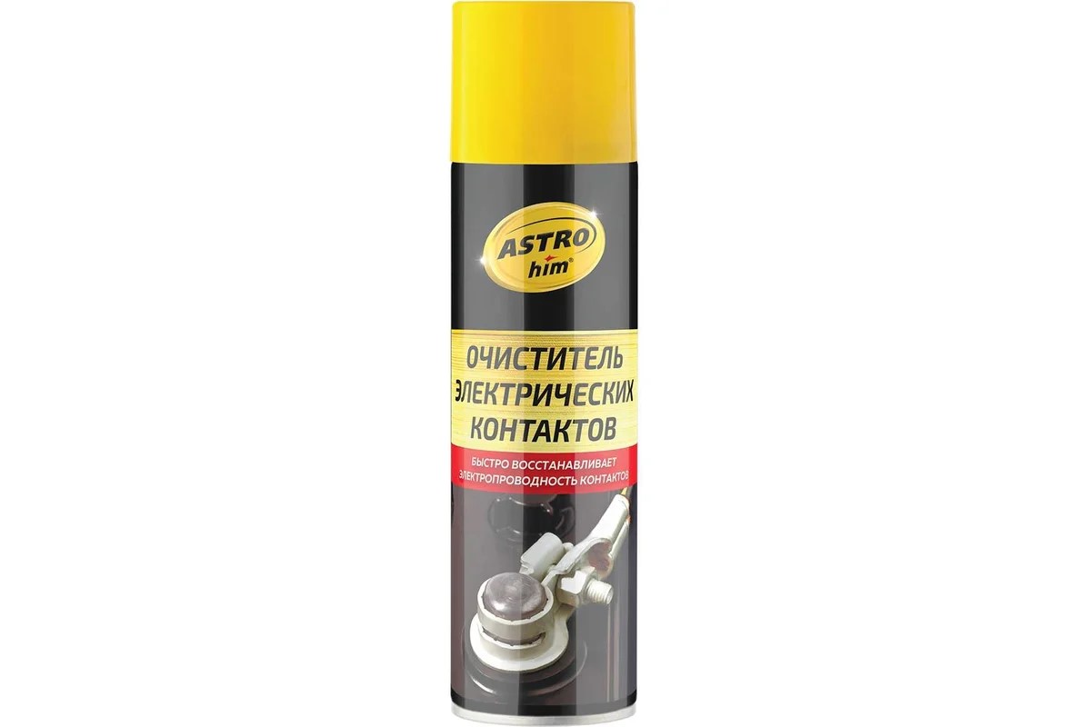 Astrohim Очиститель электрических контаков, 335мл AC-432 Предназначен для очистки контактов, покрытых окислами и решения проблем в электрических цепях, вызванных не только коррозией, но и топливными и прочими загрязнениями, формирующими на поверхности контактов низкоэлектропроводные покрытия.