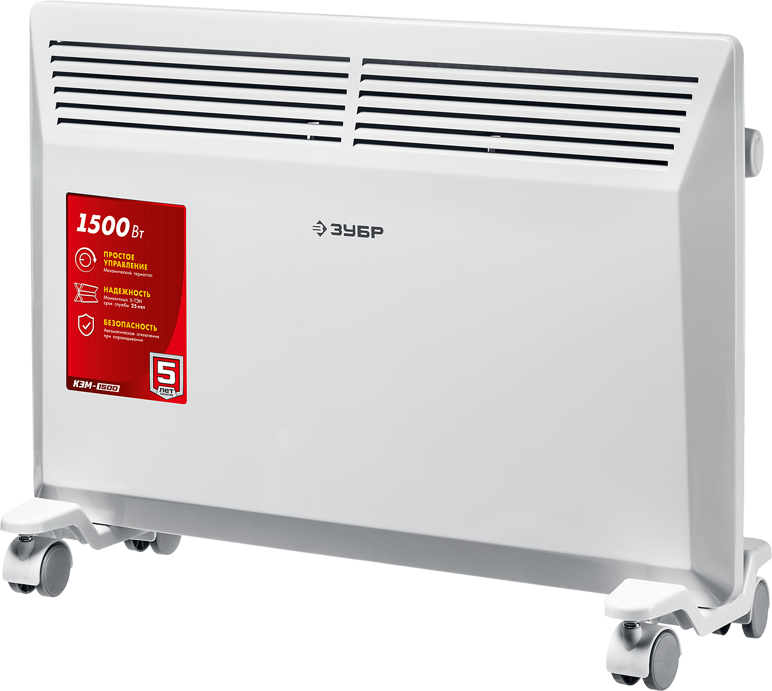 Электрический конвектор ЗУБР мощностью 1500 Вт - подойдет для обогрева любых домашних и офисных помещений площадью до 20 м2.