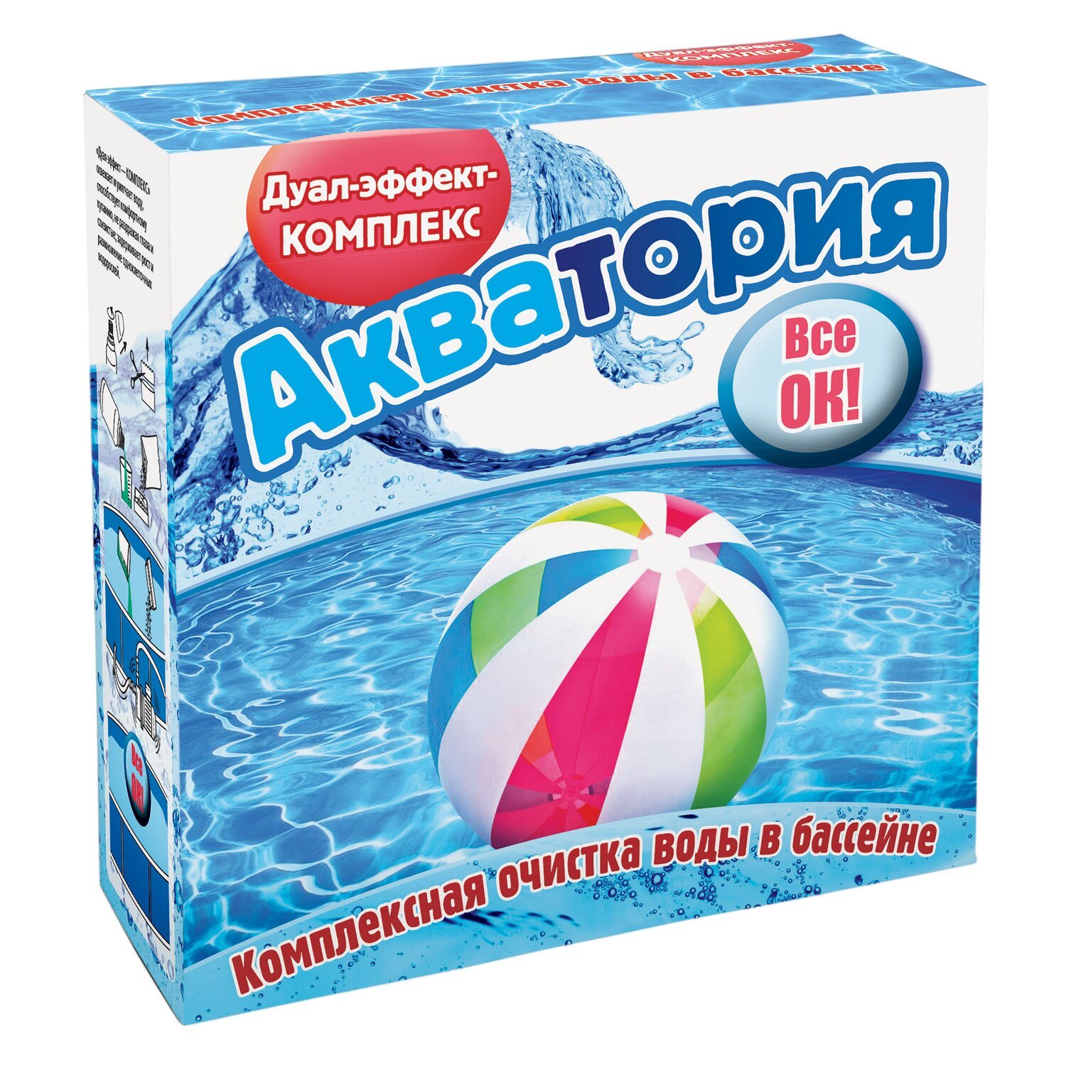 АКВАТОРИЯ ""Дуал-эффект-Комплекс"" - 2-х компонентный препарат для комплексной дезинфекции воды в бассейнах, сочетает в себе твердый порошок-источник активного кислорода и жидкий компонент-флокулянт. Система освежает и смягчает воду, способствует комфортному купанию, не раздражает глаза и слизистые; задерживает рост и размножение одноклеточных водорослей.